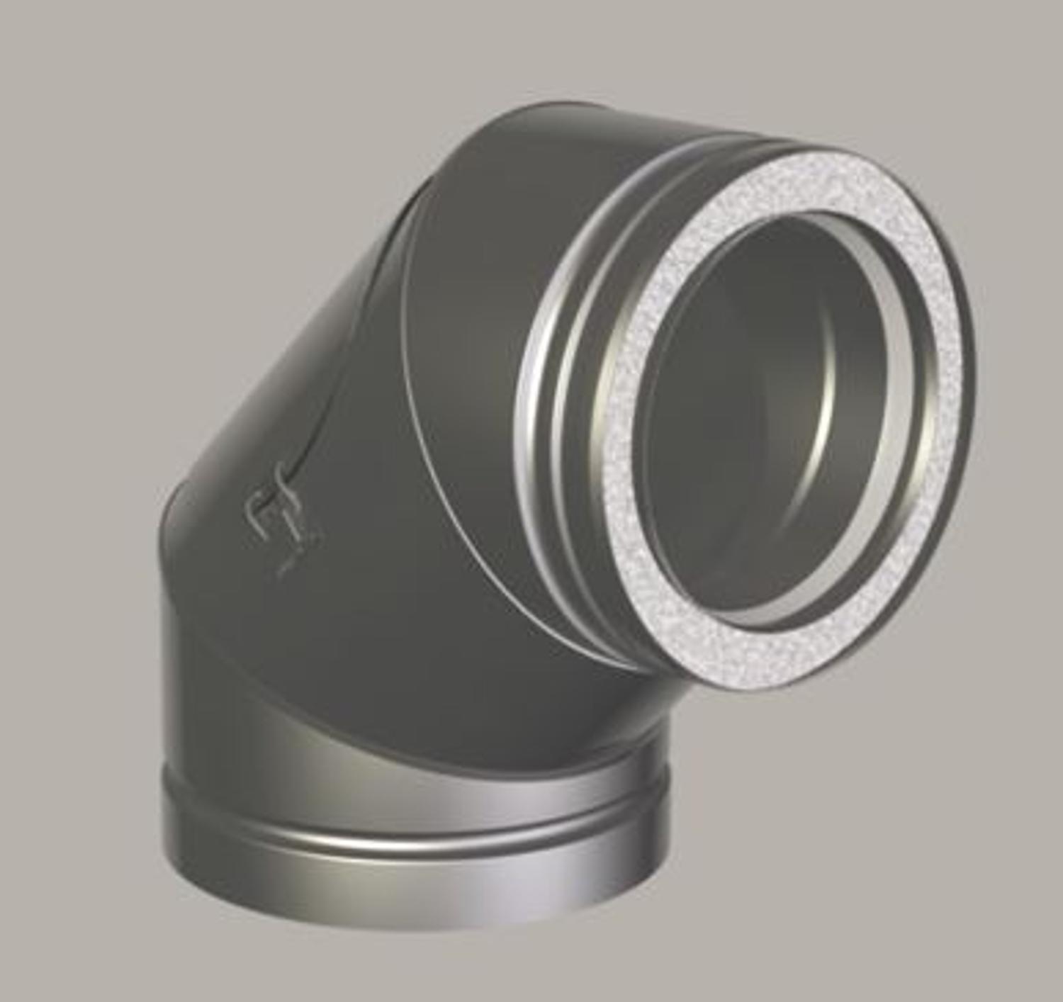 The 87° inspection bends from the Metaloterm MF series combine a sharp bend angle with an integrated inspection hatch, making them ideal for flue gas systems requiring regular inspection or cleaning. These double-walled bends are manufactured from corrosion-resistant 316 stainless steel, feature a durable elastomer seal, and have a wall thickness of 0.6 mm. They ensure a secure, gas-tight connection and simplify maintenance of vertical or horizontal sections within the flue gas system.