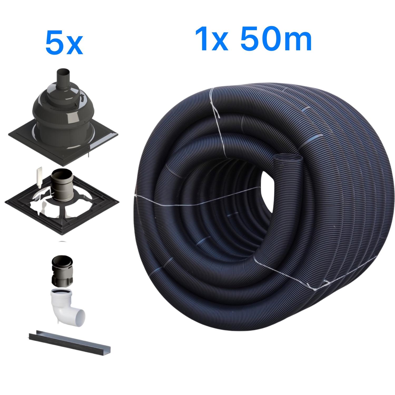 KIT UV-resistant flexible roll 50 meters + 5x chimney kit (large hood incl. mounting cross)