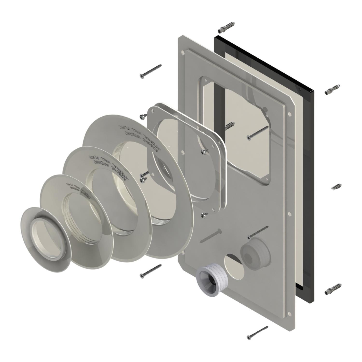Cette plaque de finition vous permet de fermer l'ouverture dans le mur de manière professionnelle. Contenu de la livraison : différentes rosaces de finition pour différents diamètres avec joints correspondants, 1 plaque FE blanche avec ouverture, 6 vis à tête cylindrique bombée blanches Tx20 Ø 4,8 x 38 R9003 A4, 6 chevilles universelles en nylon SMART « XUP » 6 x 30.