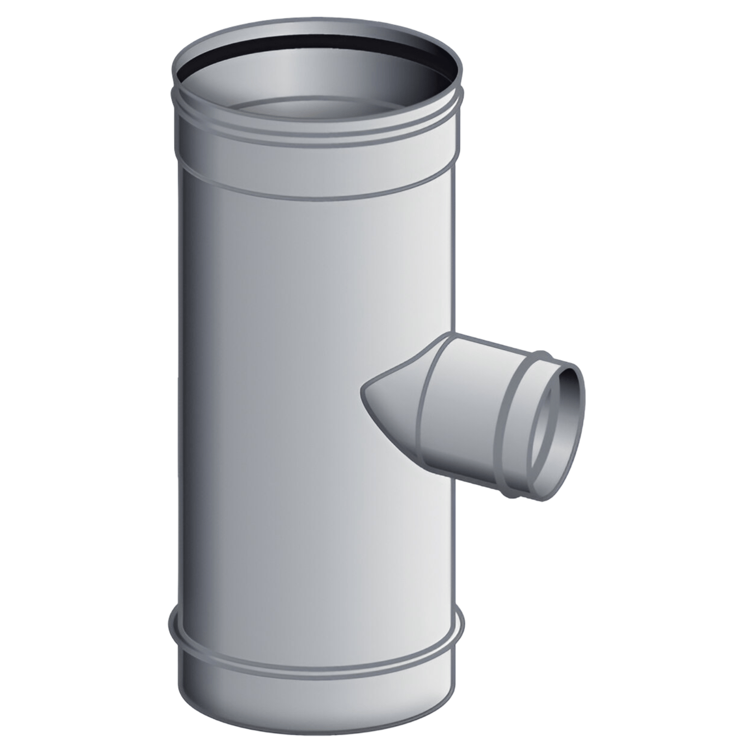 Het LD Flue inox T-stuk 90° met dichting en aftakking ø80 is een functioneel koppelstuk dat een rookgasleiding verbindt met een zijtak van 80 mm. Deze 90°-aansluiting is ideaal voor situaties waar een rechtstreekse, haakse vertakking nodig is.